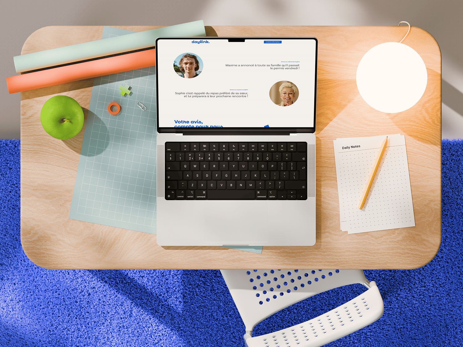 J’ai participé au repositionnement de la marque Daylink, à la structuration de la roadmap produit et à la préparation des phases de tests utilisateurs. J’ai également réalisé les maquettes et le prototype interactif en deux jours et demi, et contribué à la conception de la landing page destinée à présenter le projet et à recruter des bêta-testeurs.